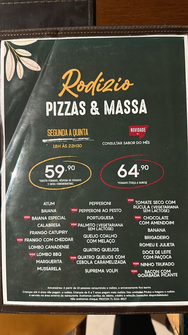 Massa: Ravioli de salmão Ravioli de cabra Nhoque molho bolonhesa Nhoque molho quatro queijos Aioli Lasanha Canelone Pizza: Os...